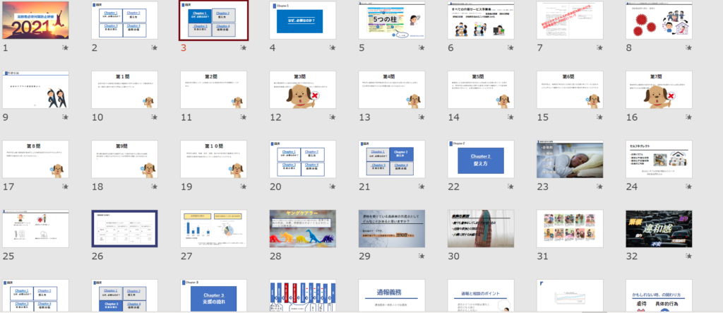 YOUTUBEのパワポ関連の動画を見まくり、見様見真似でやってきました。一つの研修動画を作ろうと思ったら、どれだけ多くの資料を読み込み、自分で理解し解釈し、人に伝えるまでにこんなに多くの過程があることを、初めて知りました。